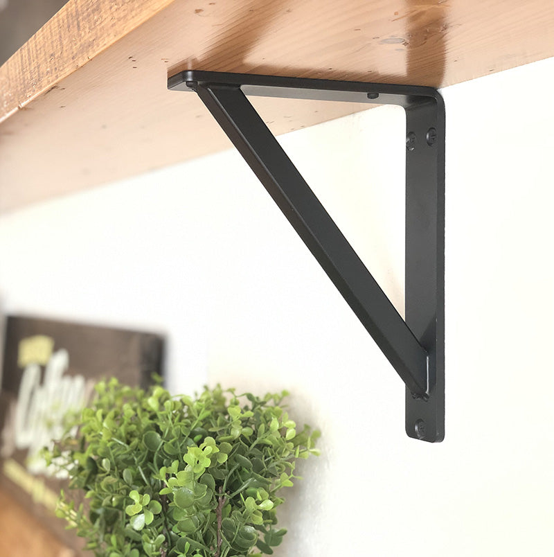 Finish choices stay simple: raw mill scale if you like a bit of rust bloom, matte black for a quiet backdrop, or a rubbed bronze that plays nice with vintage hardware. Kitchen open shelving, bathroom cubbies, living‑room gallery walls, wherever an elegant shelf bracket might save floor space, these parts install with the same three tools in ten minutes. If a stud lands in the wrong spot or the board runs extra deep, shoot us a napkin sketch—we will stretch the arm or bump an extra hole without drama.
