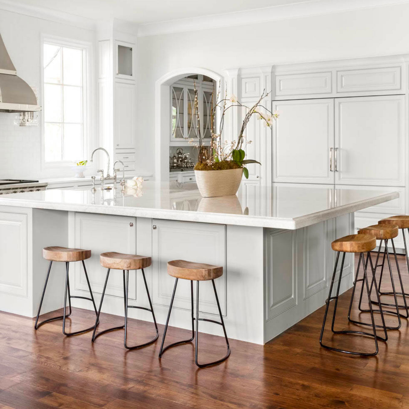 These hidden brackets provide the necessary structural support required for granite, marble, quartz, Silestone, Corian, porcelain, and wood butcher block countertop overhangs. The supports conveniently remain hidden and out of the way from stools, knees, and little ones running underneath. The look and feel they provide is more spacious and free-flowing.
