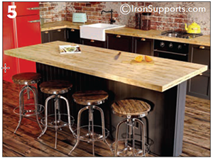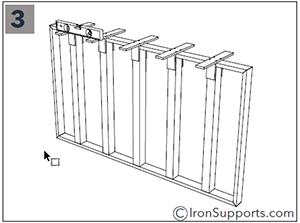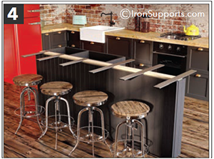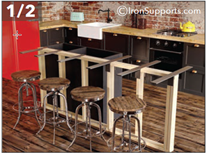 Iron Counter Support Brackets can carry significant loads but they must be securely fastened to the mounting surface with continuous blocking, or double-stud construction. When mounting into wood studs ”toeing” into the stud will ensure that all screws are fully engaged. If toeing is not an option align the bracket so that 1 top and 1 bottom screw are fully engaged. When installing into metal studs you must block the steel studs using wood studs by either piggy backing or sliding a wood stud into the C channel metal stud.